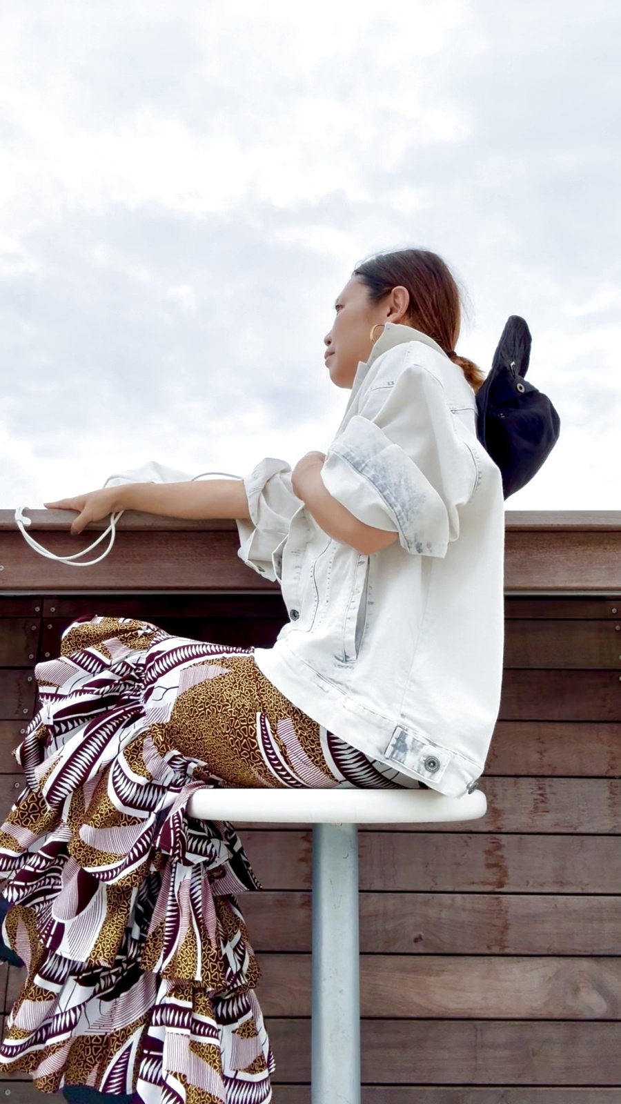 ヒップラインを拾わないゆったりめのサイズ感です。